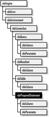 The problem with RDO is that it is very different from the DAO architecture, which means two things. First, developers had to learn a new interface, and second, converting an existing DAO application to RDO involved a lot of additional development, because almost every piece of RDO differed from DAO, as you can see by comparing Figure 1-1 and Figure 1-2 (the RDO object model). With the introduction of RDO, developers chose between DAO and RDO instead of moving directly to RDO and abandoning DAO.
